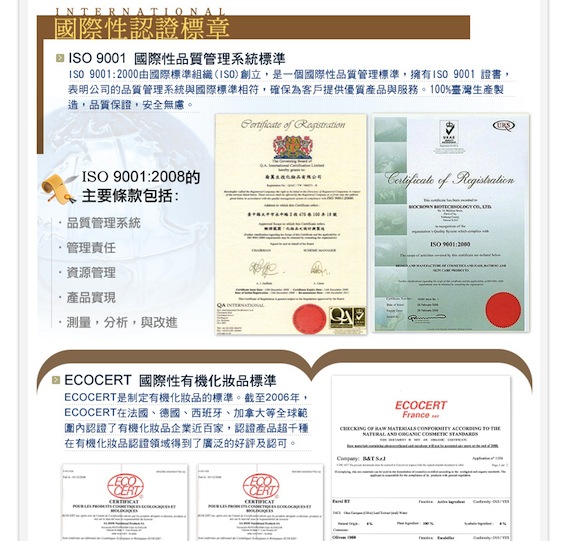 SHILLS passes not only Taiwan but international certifications including the ISO 9001, SGS, ECOCERT...etc
