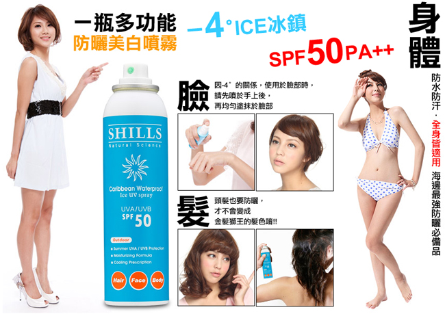 Cool sunscreen spray dengan tabir surya SPF 50, Teriknya matahari pun tidak membuat kamu hitam! Dengan -4 derajat cool feeling serta 6 kegunaan besar yaitu mempertahankan,melindungi,tabir surya,mencerahkan,menyejukkan dan melembabkan, Lebih segar dan tanpa beban karena tidak berminyak. Sangat hangat diekspos oleh media.
